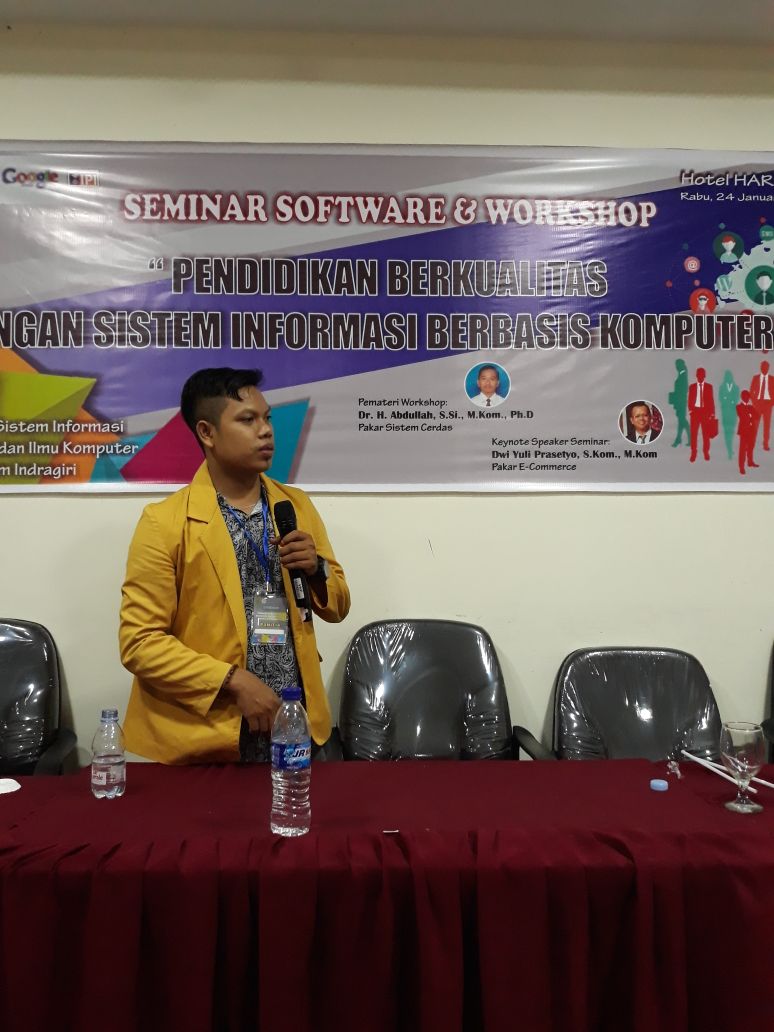TEMBILAHAN (MR) - Program Studi (PRODI) Sistem Informasi (SI) Fakultas Teknik dan Ilmu Komputer (FTIK) Universitas Islam Indragiri (UNISI) Sukses Gelar acara seminar Software dan Workshop E-Learning yang dilaksanakan di Hotel Harmoni Indragiri, Rabu (24/1/2018) kemarin.