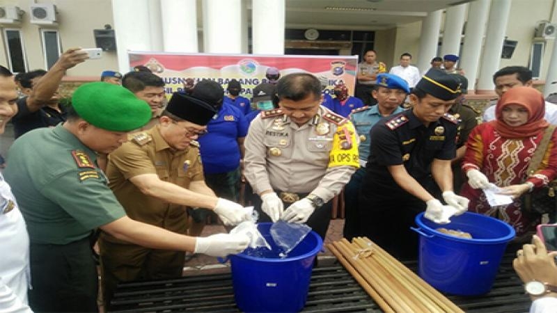 Lebih lanjut dikatakan, penangan kasus tersebut sudah berjalan dua bulan dan harus dimusnahkan. '' Jadi, hari ini waktu yang tepat untuk dimusnahkan. Hal ini dilakukan agar tidak timbul sangka buruk lain. Sedangkan sisa barang bukti masih ada, karena ada kendala penyelidikan, hasil labfor belum keluar. Kebijakan kami dengan pengadilan bb yang ada untuk bisa dimusnahkan. Sedangkan sisa akan dimusnajkan setelah hasil labfor keluar''jelas Kapolres Dumai.