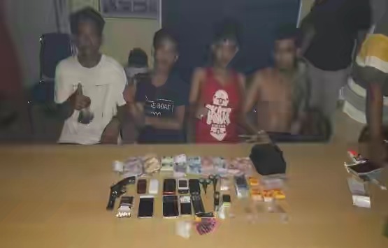 Selain keempat pelaku, 7 Orang penikmat garam setan itu juga diamankan dan barang bukti diantaranya 1 bungkus rokok Ubol yang berisi 1 paket kecil Shabu seharga Rp. 300 ribu dari pelaku MAP, 1 paket besar Shabu seharga Rp. 600 ribu, 3 paket kecil Shabu seharga Rp 150 ribu, 2 paket kecil Sabu seharga Rp. 80 ribu, 3 paket kecil Shabu seharga Rp 100 ribu, 1 paket daun ganja kering seharga Rp. 50 ribu,1 unit timbangan digital, 4 buah sendok pipet, 2 buah gunting, 1 pucuk senjata mancis gas, 9 unit Hand Phone (HP), 1 buah staplles, dan uang penjualan Shabu dengan total Rp. 5 juta dari pelaku RP.