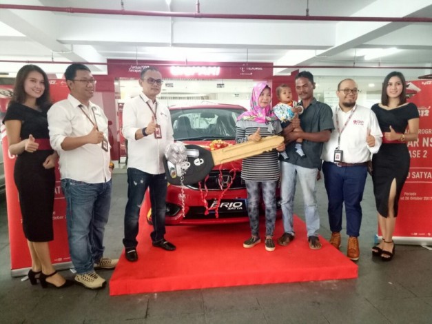 PANGKALANKERINCI (MR) - Seorang pemilik kedai sate di Pangkalan Kerinci, Kabupaten Pelalawan, Riau, Asnidar tak bisa menyembunyikan rasa bahagianya. Wanita dengan 3 orang anak ini mendapatkan 1 unit mobil Honda Brio Satya E dari Telkomsel. Mobil ini merupakan hadiah dari program Gebyar NSP yang juga merupakan program nasional.