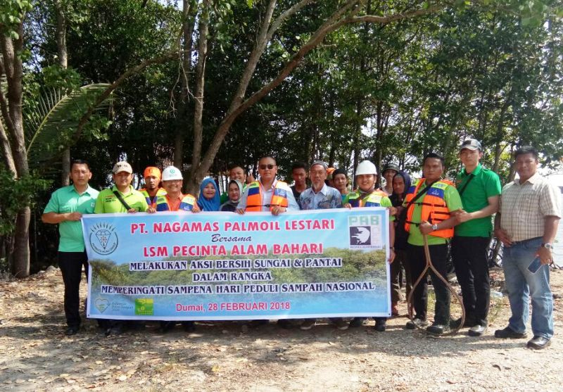 Jajaran Managemen PT Nagamas Palmoil Lestari bersama LSM Pecita Alam Bahari lakukan kegiatan bersih sampah disepanjang aliran Sungai Dumai dalam rangka Peringatan Hari Sampah Nasional 2018. Foto Ist