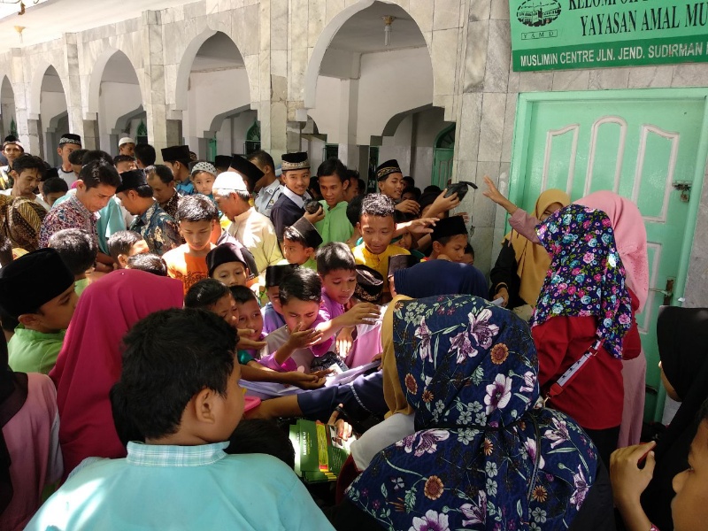 Sebanyak 200 nasi bungkus di bagikan untuk jemaah sholat Jumat di masjid Muslimin.