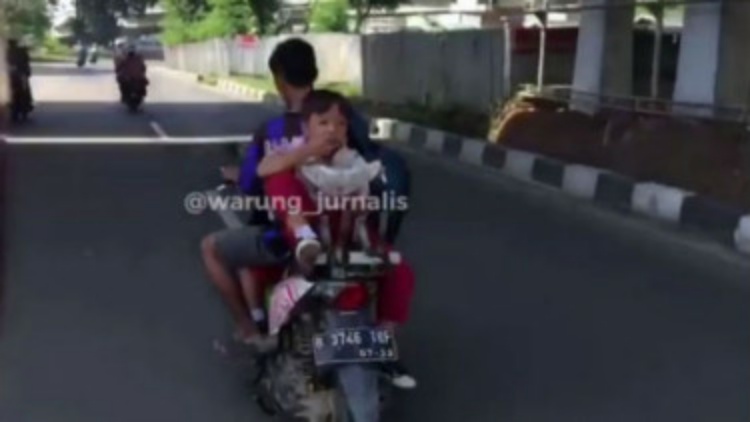 Sebenarnya bukan masalah makan yang menjadi perbincangan hangat netizen. Yang membuat video ini viral karena posisi duduk bocah laki-laki tersebut yang membelakangi pengendara motor tanpa berpegangan, dengan mengangkat kedua kakinya yang disandarkan di besi jok motor.