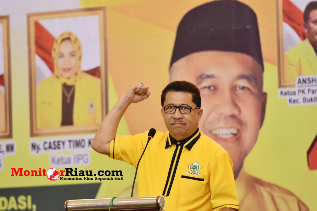 “Seluruh kader dan simpatisan Partai Golkar Dumai wajib hukumnya dan harus siap memenangkan pasangan Ayo pada Pilgubri 27 Juni 2018. Setuju?,” tanya Timo Kipda disambut yel yel menang, menang, menang, menang yes..dari seluruh hadirin.