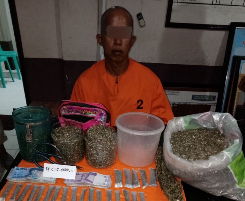 Selain ganja yang disimpan dalam karung, juga disita 3 buah toples berisi ganja kering, 22 paket kecil, 1 paket sedang, 66 buah kecambah, uang tunai Rp. 615.000.- (enam ratus lima belas ribu rupiah) serta 1 buah gunting. "Keseluruhan barang bukti ganja kering, seberat 2.2 Kg", tambah Perwira yang pernah bertugas di Kesatuan Elit Polri.