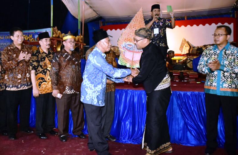 Penyerahan wayang dari Tokoh Masyarakat Jawa, H Parto Wiguno ke dalang