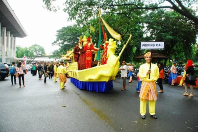 Kegiatan ini menampilkan bentuk arak-arakan dalam satu tema ragam budaya daerah tentang upacara adat, hubungan kemasyarakatan dan atau religi yang mencerminkan ciri khas tradisi daerah setempat. Misalnya upacara pesta panen, tolak bala, hantaran lamaran, pengantin sunat dan lainya. Pada kesempatan ini Provinsi Riau yang diwakili Dinas Pariwisata (Dispar), melalui Bidang Ekonomi Kreatif, meraih penghargaan dengan kategori penata musik iringan terbaik.