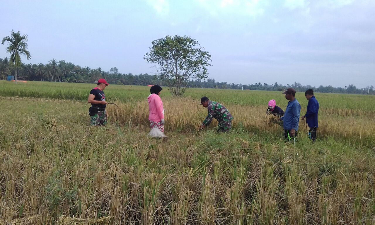 Salah satunya Babinsa Desa Seberang Pebenaan, Serma Noviandi langsung turun ke sawah ikut serta membantu dan mendampingi panen padi di lahan sawah milik Pak Sumardi anggota Kelompok Tani Usaha baru, Desa Seberang Pebenaan, Kecamatan keritang.