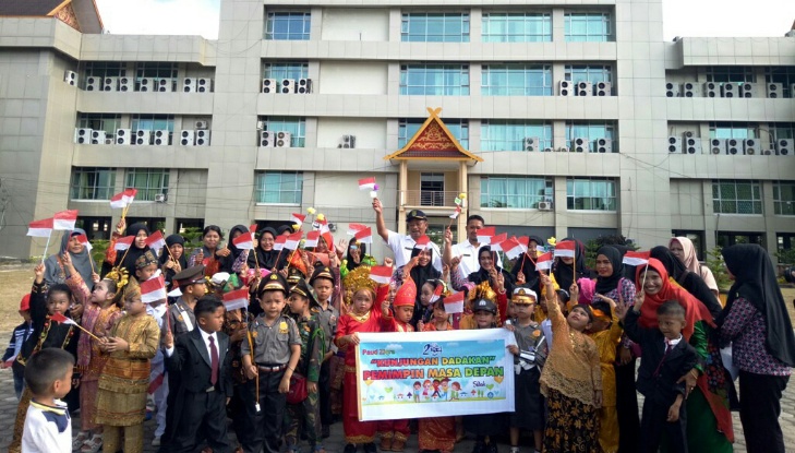 TEMBILAHAN (MR) - Pelaksana Harian (Plh) Asisten III bidang Administrasi Umum Sekretariat Daerah (Setda) Kabupaten Indragiri Hilir (Inhil), RM Sudinoto melepas secara resmi Field Trip Pendidikan Anak Usia Dini (PAUD) Ziqra di Halaman Kantor Bupati Inhil, Jalan Akasia Nomor 1 Tembilahan, Rabu (9/5/2018).