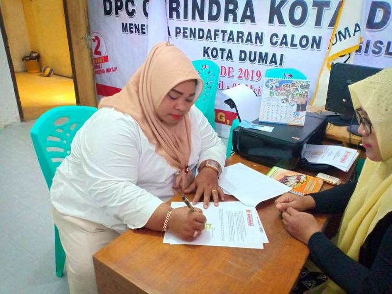 Petria Naspita mendaftar di Kantor DPC Partai Gerindra Dumai