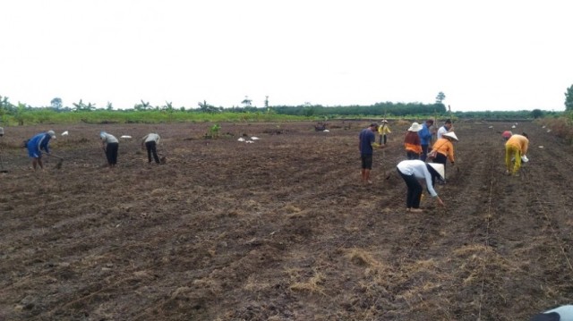 MUARA BUNGKAL (MR) - Menjalani puasa di bulan Ramadhan dan teriknya matahari tidak mengurangi semangat anggota kelompok Tani Abadi Desa Muara Bungkal, Kecamatan Sungai Mandau, Kabupaten Siak, Riau untuk mengolah lahan.
