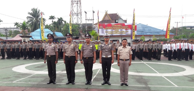 TEMBILAHAN (MR) - Sebanyak 22 orang personil Polres Indragiri Hilir (Inhil) dinaikan pangkatnya setingkat lebih tinggi yang diselenggarakan dalam upacara laporan kenaikan pangkat anggota Polri periode 1 Juli 2018 dan ASN Polri, periode 1 April 2018, Senin (2/7/2018).