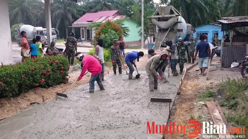 Salah satu sasaran fisik TMMD ke 102 adalah semenisasi Jalan Air Bersih Gang Sekolah RT 10 Kelurahan Kampung Baru Kec. Bukit Kapur.
