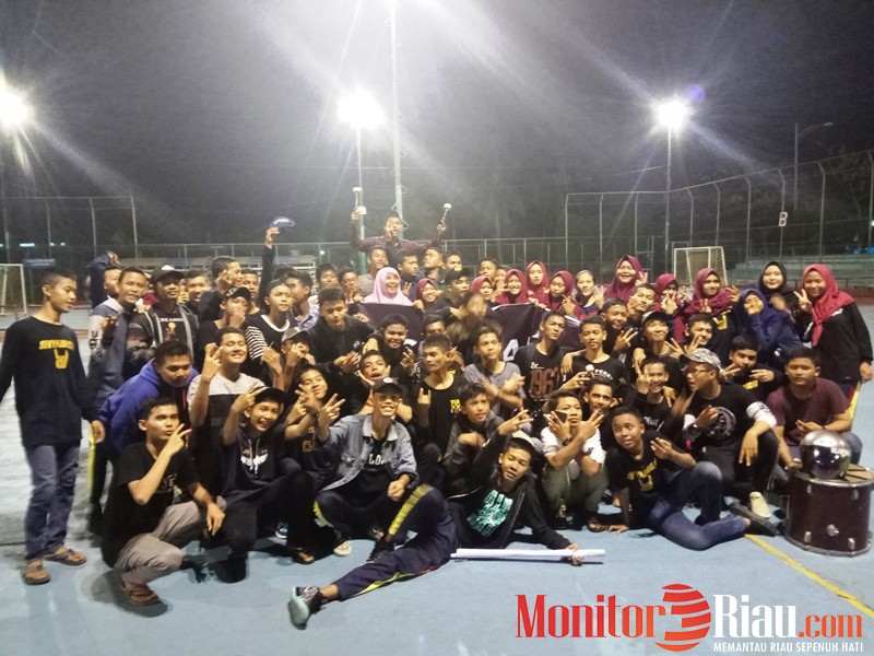 Suporter SMAN 2 Dumai berpose bersama usai mendukung sekolah mereka