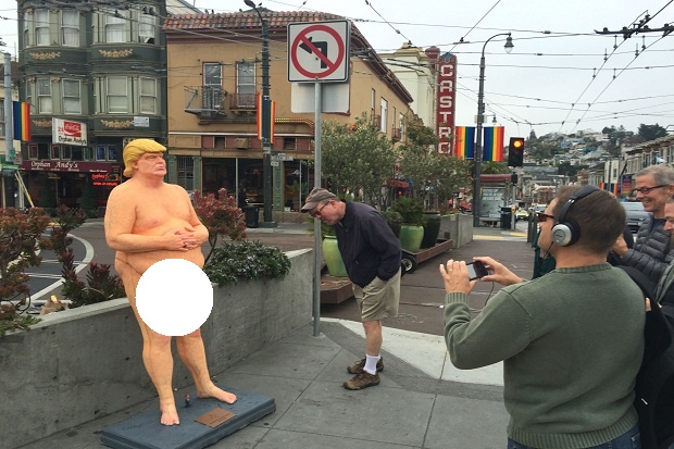 MONITORRIAU.COM - Sebuah patung yang menggambarkan sosok calon presiden Amerika Serikat (AS), Donald Trump dalam kondisi telanjang mendadak muncul di kawasan Union Square, San Francisco, California. Patung itu menarik perhatian publik AS, meski akhirnya dihilangkan otoritas kota karena dianggap melanggar norma kesopanan.