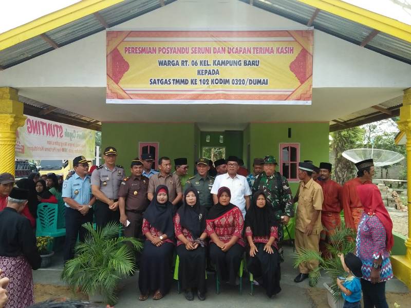 Pada peresmian Posyandu Seruni terlebih dahulu dilaksanakan pengguntingan pita oleh Kolonel Kav. Tri Handoko didampingi Dandim 0320/Dumai Letkol Inf. Horas Sitinjak,S.I.P, Wakil Walikota Dumai Eko Suharjo,SE serta unsur Forkopimda Dumai.