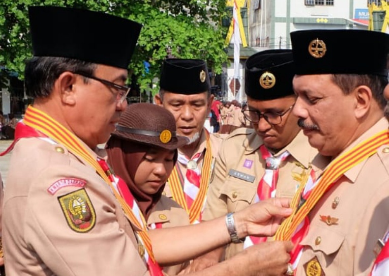 TEMBILAHAN (MR) - Sekretaris Daerah Kabupaten Inhil, H Said Syarifuddin selaku Wakil Ketua Majelis Pembimbing Cabang Gerakan Pramuka Inhil menerima Lencana Melati dari Kwartir Nasional Gerakan Pramuka, Sabtu (18/8/2018) pagi.