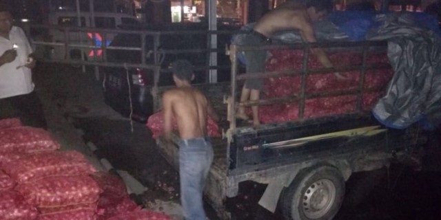 Bawang itu dibawa dengan mobil Gran Max oleh pelaku berinisial SR (57) dan kernet DD (22), warga Jalan Jenderal Sudirman, Desa Sepahat, Kecamatan Bukit Batu, Bengkalis, Riau.