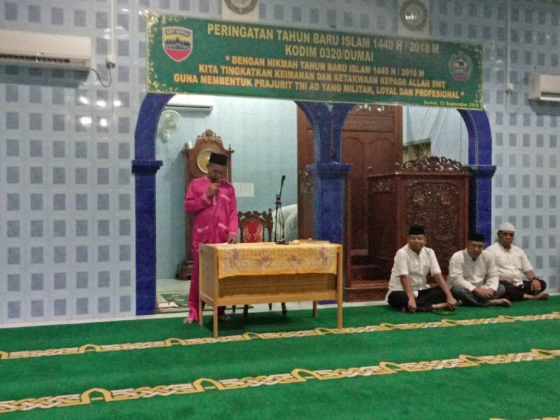 DUMAI (MR) - Kodim 0320/Dumai peringati Tahun Baru Islam 1440 H/2018 M yang dipimpin Kasdim 0320/Dumai Mayor Inf Hasan Ibrahim, pada Kamis (13/9/2018) di Masjid Al Firman Kodim 0320/Dumai Jl. Sutan Syarif Kasim Kel. Sukajadi Kec. Dumai Kota Dumai.