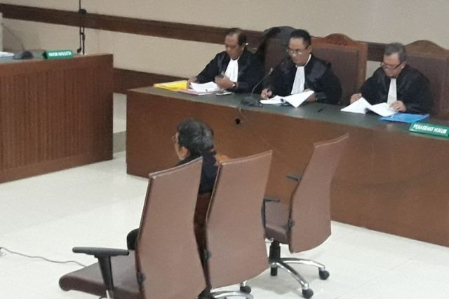 Pegawai pada Ditjen Perimbangan Keuangan Kementerian Keuangan, Yaya Purnomo duduk di kursi terdakwa di Pengadilan Tipikor Jakarta, Kamis (27/9/2018). (KOMPAS.com/ABBA GABRILLIN)