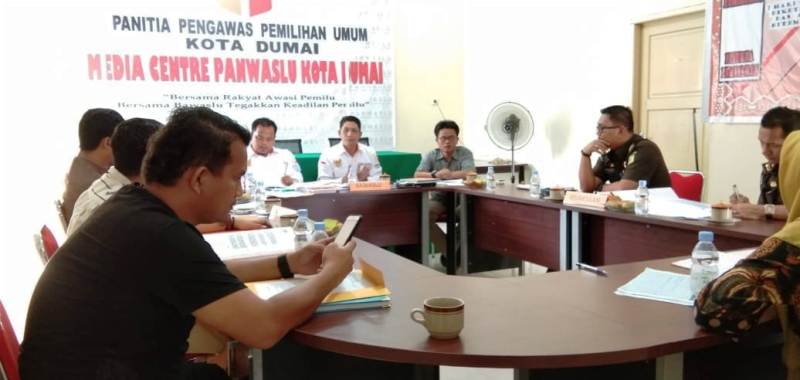 Rapat pembahasan dugaan pelanggaran kampanye pun dilakukan bersama Polres dan Kajari Dumai di Kantor Bawaslu Dumai (5/10/2018).