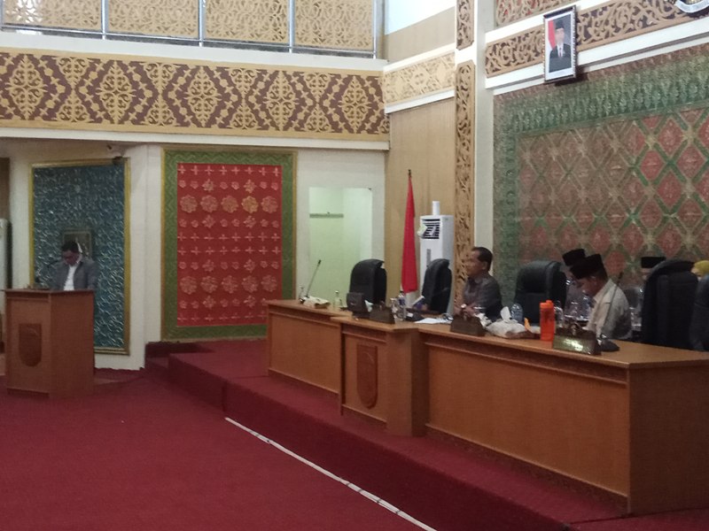 Seusai dilakukan absensi kehadiran anggota DPRD Kabupaten Pelalawan oleh pimpinan sidang ternyata sudah memenuhi kuorum sehingga mempersilahkan Ketua Panitia Khusus (Pansus) perubahan peraturan DPRD, Abdul Muzakir untuk membacakan hasil laporannya.