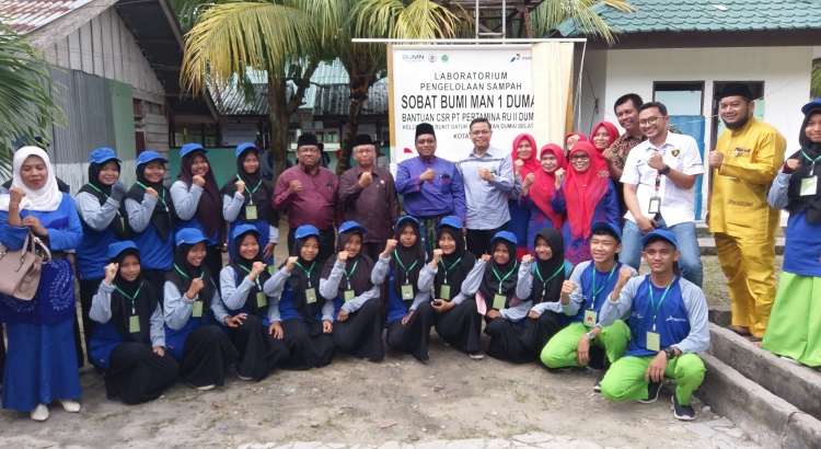 DUMAI (MR) - MAN 1 Dumai yang merupakan Sekolah Adiwiyata Binaan CSR Pertamina RU II Dumai melakukan peresmian kegiatan ekstrakurikuler siswa cinta lingkungan bernama Sobat Bumi pada Jumat (2/11/2018).