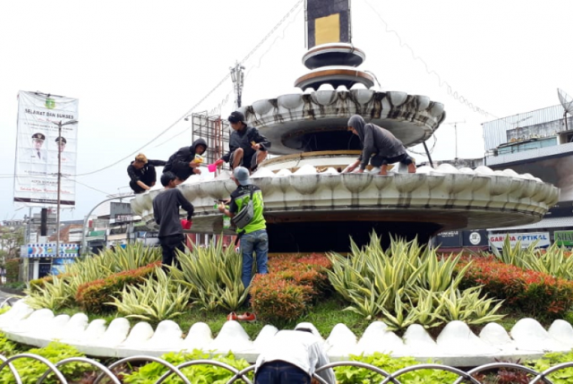Di Sukabumi Anggota Geng Motor Dihukum Bersihkan Tugu Adipura