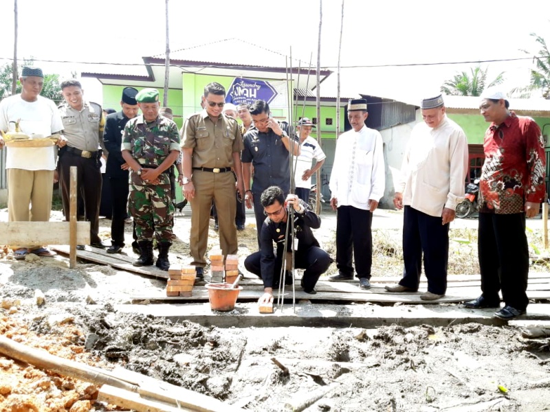 DUMAI (MR) - Pembangunan Musholla Al Mansur dan Pendidikan Tahfidz Quran, Jalan Siliwangi Gang Tuk Nuar, Kelurahan Jaya Mukti, Kecamatan Dumai Timur, Kota Dumai dimulai dengan ditandai peletakan batu pertama oleh Camat Dumai Timur, Irawan Sukma, Senin (26/11/2018).