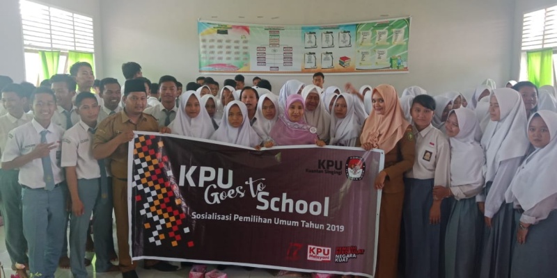 KUANSING (MR) - Komisi Pemilihan Umum Kabupaten Kuantan Singingi, mengadakan sosialisasi Goes To School kepada pemilih pemula di Aula SMAN 2 Singingi Hilir, Selasa (27/11/2018).