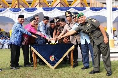 PEKANBARU (MR) - Walikota Pekanbaru Firdaus didampingi Direktur Jenderal Penyelenggaraan Pos dan Informatika Kementerian Kominfo Republik Indonesia, Ahmad Ramli, secara resmi melucurkan Panggilan Kedaruratan Call Center 112 yang disebut dengan Pekanbaru Siaga 112 di halaman kantor Walikota, Kamis (29/11/2018).