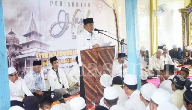 TEMBILAHAN (MR) - Bupati Kabupaten Inhil, HM Wardan menghadiri peringatan haul Syekh Abdurrahman Siddiq Bin Muhammad Afif Al-Banjari Ke-82, Rabu (10/4/2019) di Desa Teluk Dalam, Kecamatan Kuala Indragiri.