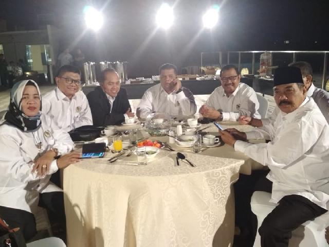 Para anggota DPRD Pekanbaru dan pejabat Pemko saat pembukaan Bimtek di Bali, Jumat malam (23/8) di Swiss-Belhotel Bali.