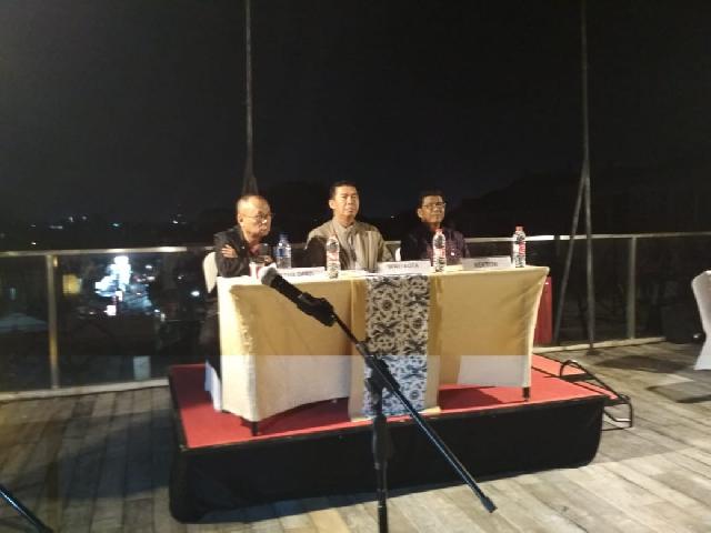 Dari kiri: Ketua DPRD Pekanbaru Sahril SH, Walikota Pekanbaru Firdaus MT, Rektor Universitar Ngurah Rai Bali Drs I Nyoman Suraba Ditanaya, duduk bersama saat pembukaan Bimtek di Bali, Jumat malam (23/8) di Swiss-Belhotel Bali.