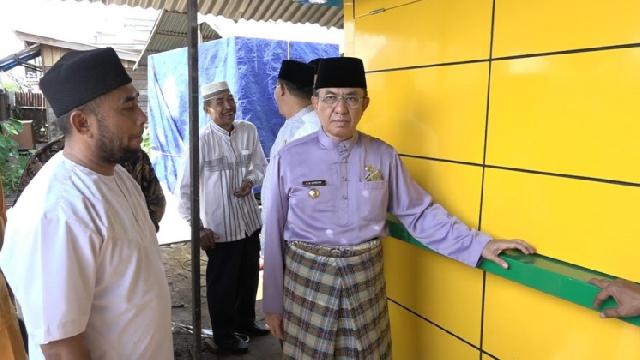 TEMBILAHAN (MR) - Bupati Kabupaten Inhil, HM Wardan meninjau pembuatan tempat jualan atau mini mart yang diperuntukkan bagi pedagang asongan, Jumat (5/7/2019), di Jalan Subrantas, Tembilahan.*** (diskominfops)