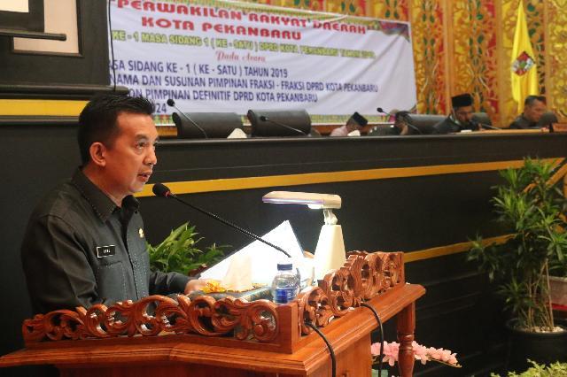 MONITRRIAU.COM - DPRD Pekanbaru menggelar rapat paripurna, nama-nama pimpinan defenitif DPRD Kota Pekanbaru dan susunan nama-nama Fraksi di DPRD Kota Pekanbaru periode 2019-2024, Jum'at (13/09/19) siang.