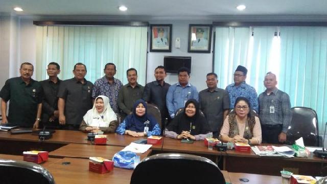 Anggota komisi III DPRD Pekanbaru foto bersama dengan Disdik Pekanbaru, usai hearing Senin (28/10/2019).