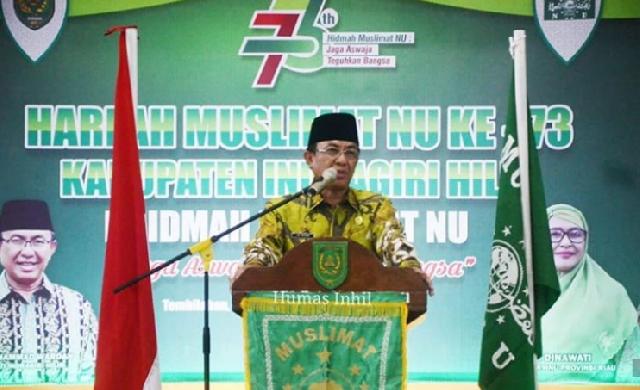 TEMBILAHAN (MR) - Bupati Indragiri Hilir (Inhil) HM Wardan menghadiri peringatan Hari Lahir (Harlah) Muslimat NU ke-73 tahun 2019.