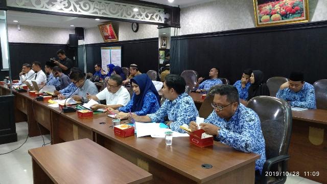 Jajaran pejabat Dinas PUPR Pekanbaru tampak serius menghadiri hearing dengan Komisi IV DPRD Pekanbaru, Senin (28/10/2019) di ruang Badan Musyawarah.