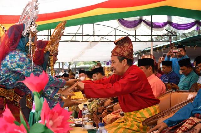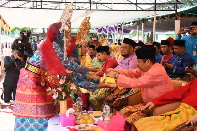 Gubernur Riau H Syamsuar saat disuguhkan sekapur sirih