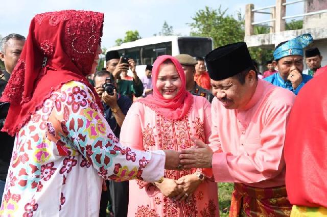 Bupati Bengkalis Amril Mukminin bersalaman dengan Ketua TP-PKK Provinsi Riau Hj Misnarni.