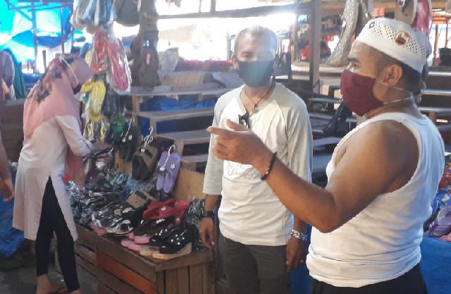 Kasi Penertiban Pasar Disdagtri Inhil, Bambang (mengenakan masker warna hitam) sedang bernegosiasi dengan pedagang