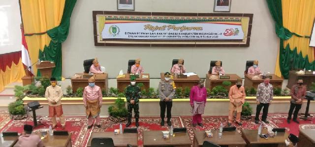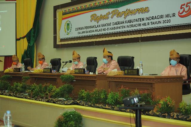 TEMBILAHAN (MR) - DPRD Kabupaten Indragiri Hilir (Inhil) menggelar rapat paripurna istimewa dalam rangka Milad Kabupaten Inhil ke-55 di Gedung DPRD Inhil, Jalan HR Soebrantas, Tembilahan, Ahad (14/6/2020).