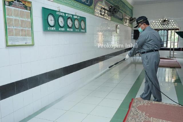 Seperti pada Kamis (2/4/2020), penyemprotan dilakukan di Kecamatan Tempuling dan Kecamatan Kempas dengan menyasar fasilitas umum berupa rumah ibadah, jembatan dan pasar-pasar. (Diskominfops)