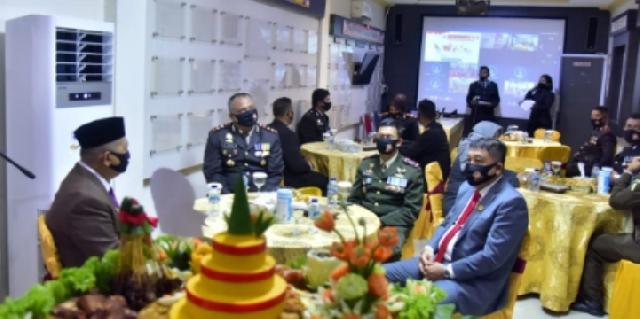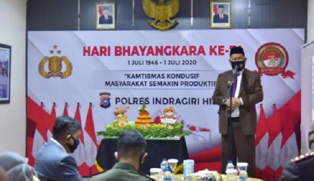TEMBILAHAN (MR) - Bertempat di Aula Tribarata Mapolres Inhil, Rabu (1/7/2020) Pagi dilaksanakan Upacara secara Virtual dalam rangka HUT Bhayangkara Ke-74 TH 2020 yang dihadiri Wakil Bupati H.Syamsuddin Uti, Wakil Ketua DPRD DR.H.Mariyanto dan Unsur Forkopimda, Perwakilan Kepala Pos Danlanal AL Inhil serta jajaran Polres Inhil.