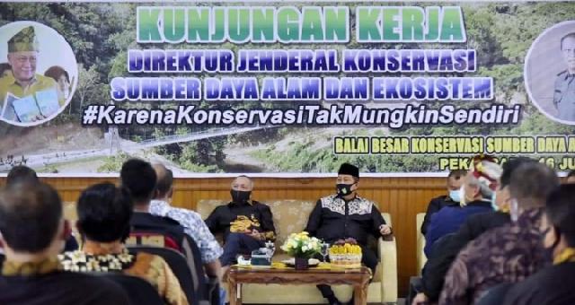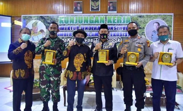TEMBILAHAN (MR) - Pemerintah Kabupaten Indragiri Hilir menerima penghargaan dari Kementerian Lingkungan Hidup Direktorat Jenderal Konservasi Sumber Daya Alam dan Ekosistem, Kamis (16/7/2020) siang di lantai II Kantor Balai Besar KSDA Riau Jl.H.R.Soebrantas Panam - Pekanbaru.