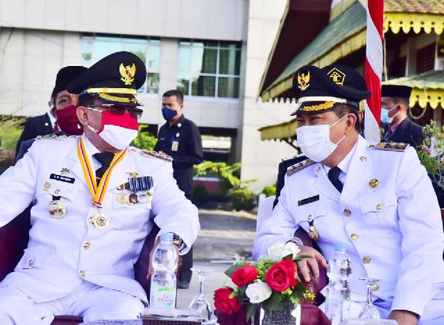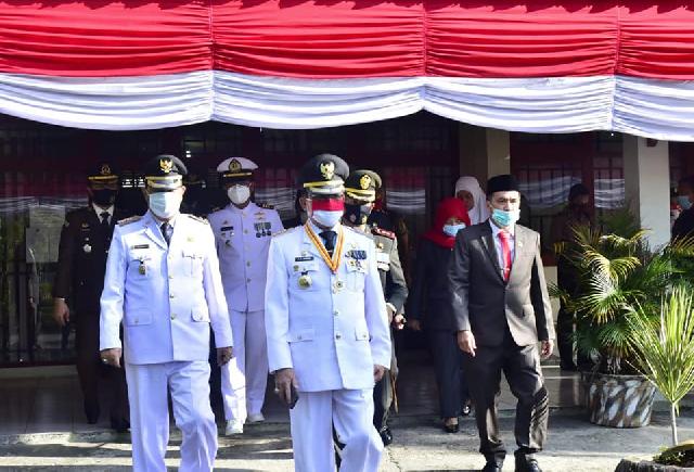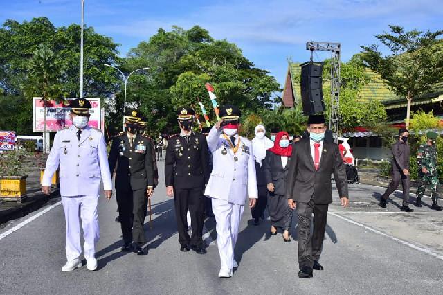 Upacara tersebut berlangsung dengan tetap menjaga protokol kesehatan Covid-19 di Halaman Kantor Bupati Inhil, Jalan Akasia, Tembilahan.