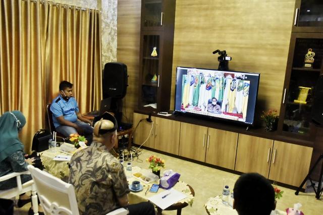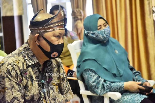 TEMBILAHAN (MR) - Wakil Bupati Inhil H.Syamsuddin Uti bersama Ketua TP PKK Inhil Hi.Zulaikhah Wardan, S.Sos M.E mengikuti Rapat Koordinasi Penanganan Penanggulangan Covid-19 dan Pemilu serentak dimasa Pendemi covid-19 secara Virtual lansung dari Ruang Multi Media Diskominfo Pers Inhil Kompleks Kantor Bupati Jl.Akasia No.1 Tembilahan, Kamis (27/8/2020).