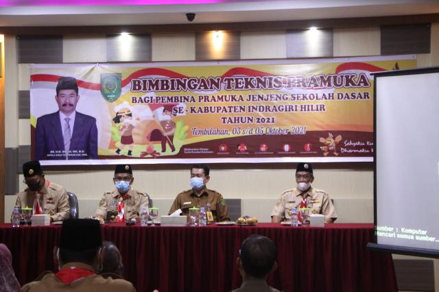 TEMBILAHAN (MR) - Dalam upaya meningkatkan kompetensi pembina Pramuka sekaligus menghidupkan kembali ekstrakurikuler kepramukaan ditengah pandemi Covid-19, Dinas Pendidikan (Disdik) Inhil melalui bidang SD seksi kurikulum mengelar Bimbingan Teknis (Bimtek) pembina Pramuka jenjang SD Se-kabupaten Inhil.
