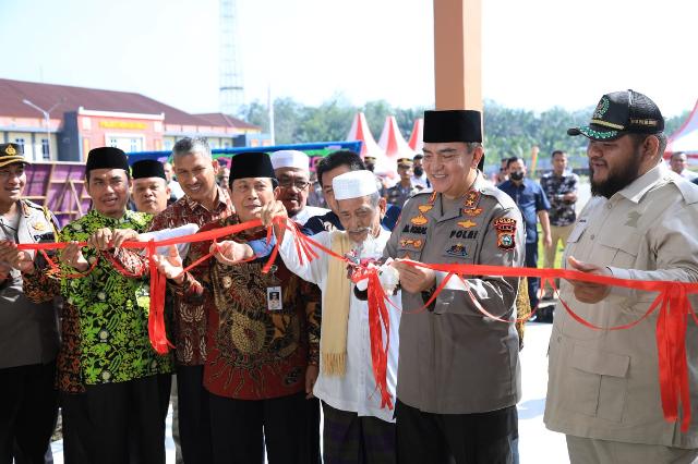 Kapolda Riau, Bupati Rohul H Sukiman dan Ketua DPRD Rohul Novli Wanda melakukan pengguntingan pita.